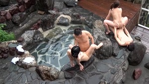 露天風呂付きの高級旅館で滞在時間めいっぱいハメまくる夫婦交換セクロスwww